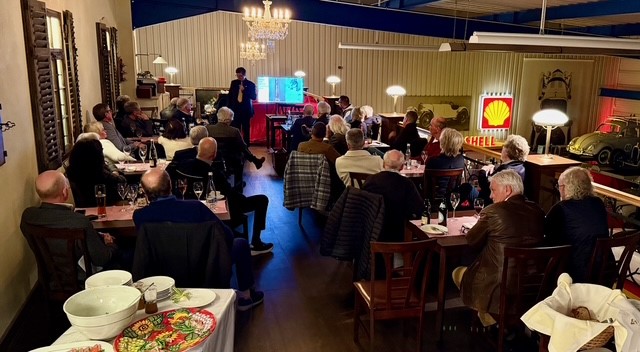 Herr Wulff spannte einen Bogen von den Anfängen des Clubs im Jahr 1900, als 18 Pioniere eine Gemeinschaft rund ums Automobil gründeten, bis in die Gegenwart. Besonders beeindruckend war die Präsentation des originalen Gründungspokals – ein historisches Symbol, das die lange Tradition und den Pioniergeist des Clubs eindrucksvoll verkörpert. Auch die Entstehung des Club-Emblems sorgte für Schmunzeln: vom humorvollen „Spargel“ zum stilisierten Motor zeigt es, wie sich Identität und Technik über die Jahrzehnte entwickelt haben. Oldtimer-Rallyes, kreative Skizzen und innovative Ideen der Mitglieder unterstreichen den ungebrochenen Erfindergeist des Clubs.